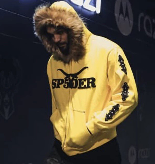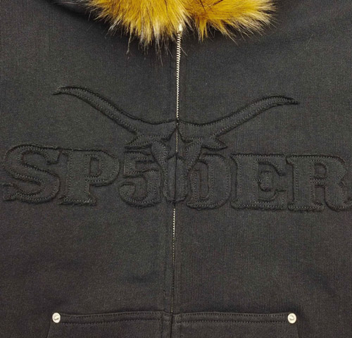 Sp5der Gem Patched Fur Color Zip Hoodie