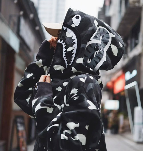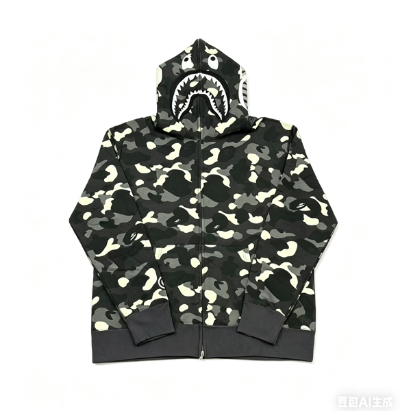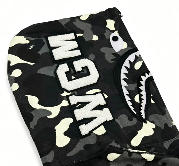 Bape Dark Glow Black Camo Shark Hoodie